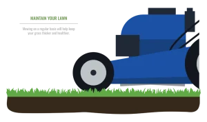 Maintain your new green grass with continuous monitoring and maintenance. Once your lawn has grown a few inches, it’s time to mow. Mowing on a regular basis will help keep your grass thicker and healthier. Torn grass blades are more susceptible to lawn diseases and pests, so be sure your mower blades are sharp.